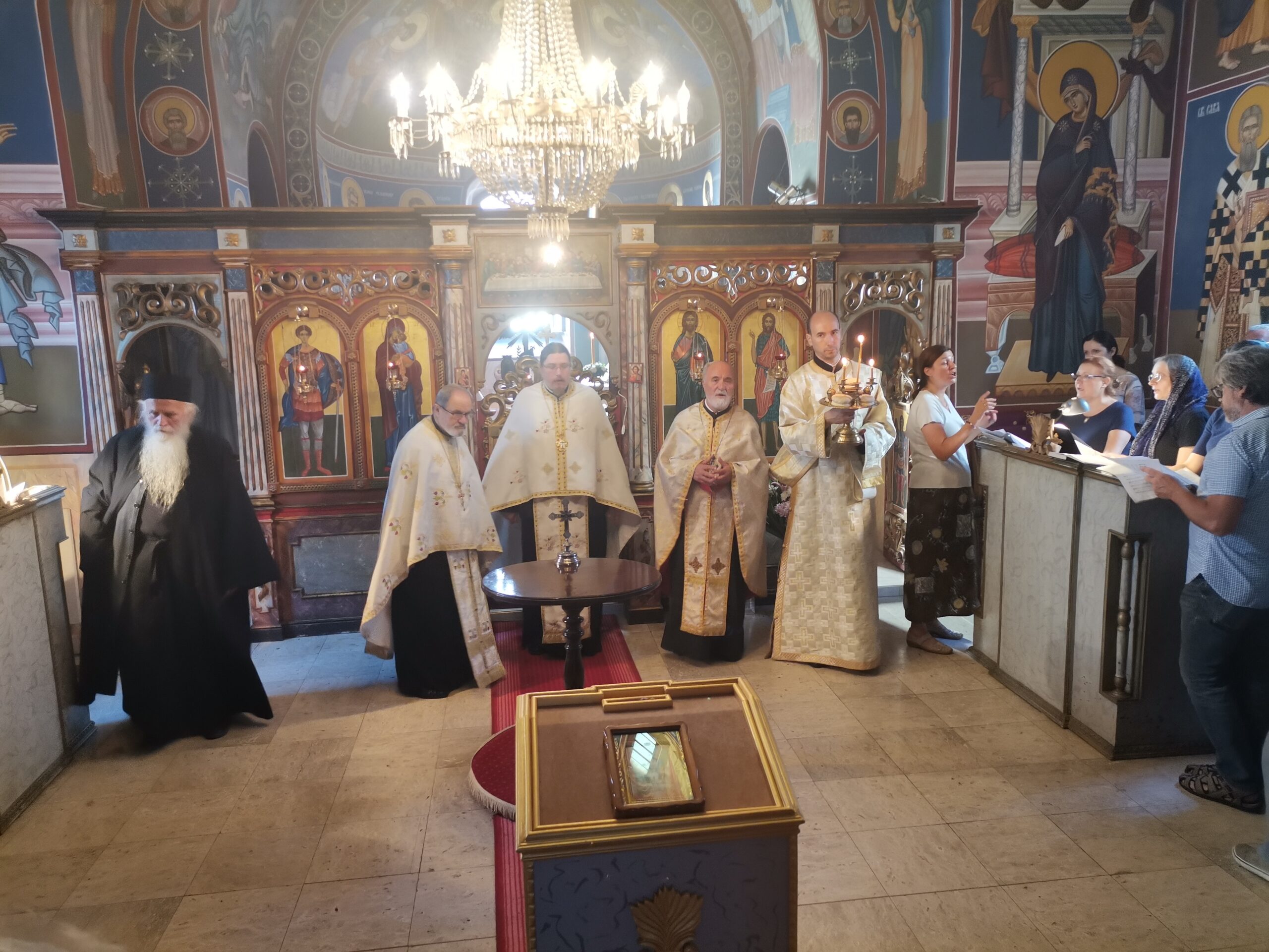 Служио је отац Јован, ректор Карловачке богословије, уз неколико гостујућих свештеника, међу којима прота Бранислав, којег отац Стефан сматра такорећи сабратом и прота Часлав Маринковић, дугогодишњи професор појања у најстаријем нашем богословском училишту.