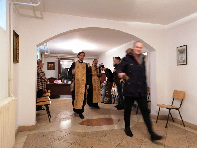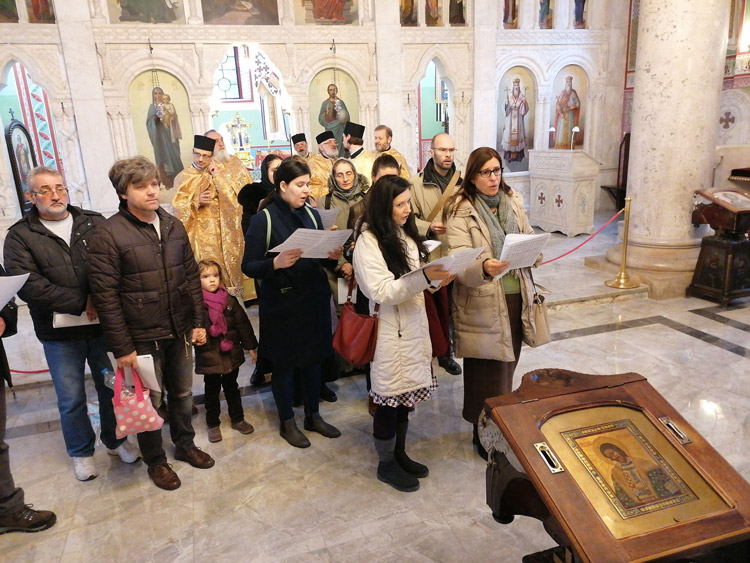 Прва слика – платно, богојављенско, из Јерусалима, са Јордана, које су, пре две године, на дар донели чланови Хора Дејан Тонић и Дејан Лазић. Потом урамили. Потом Дејан Лазић урезао тропар „Во Јордање” у рам. Изложено у нашој хорској соби.