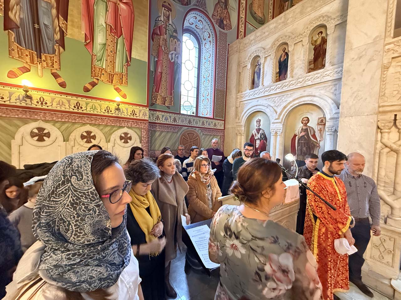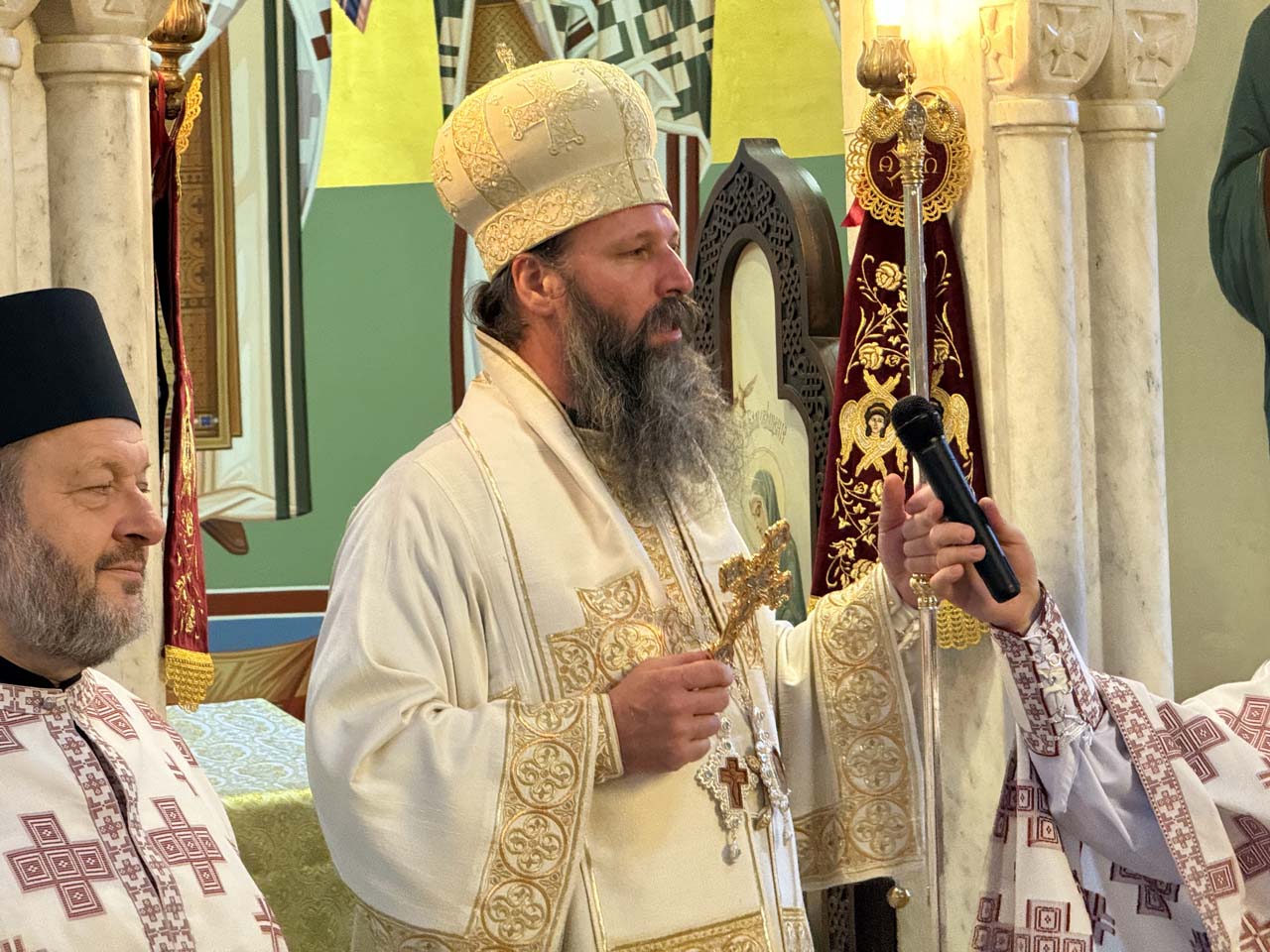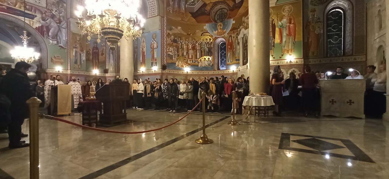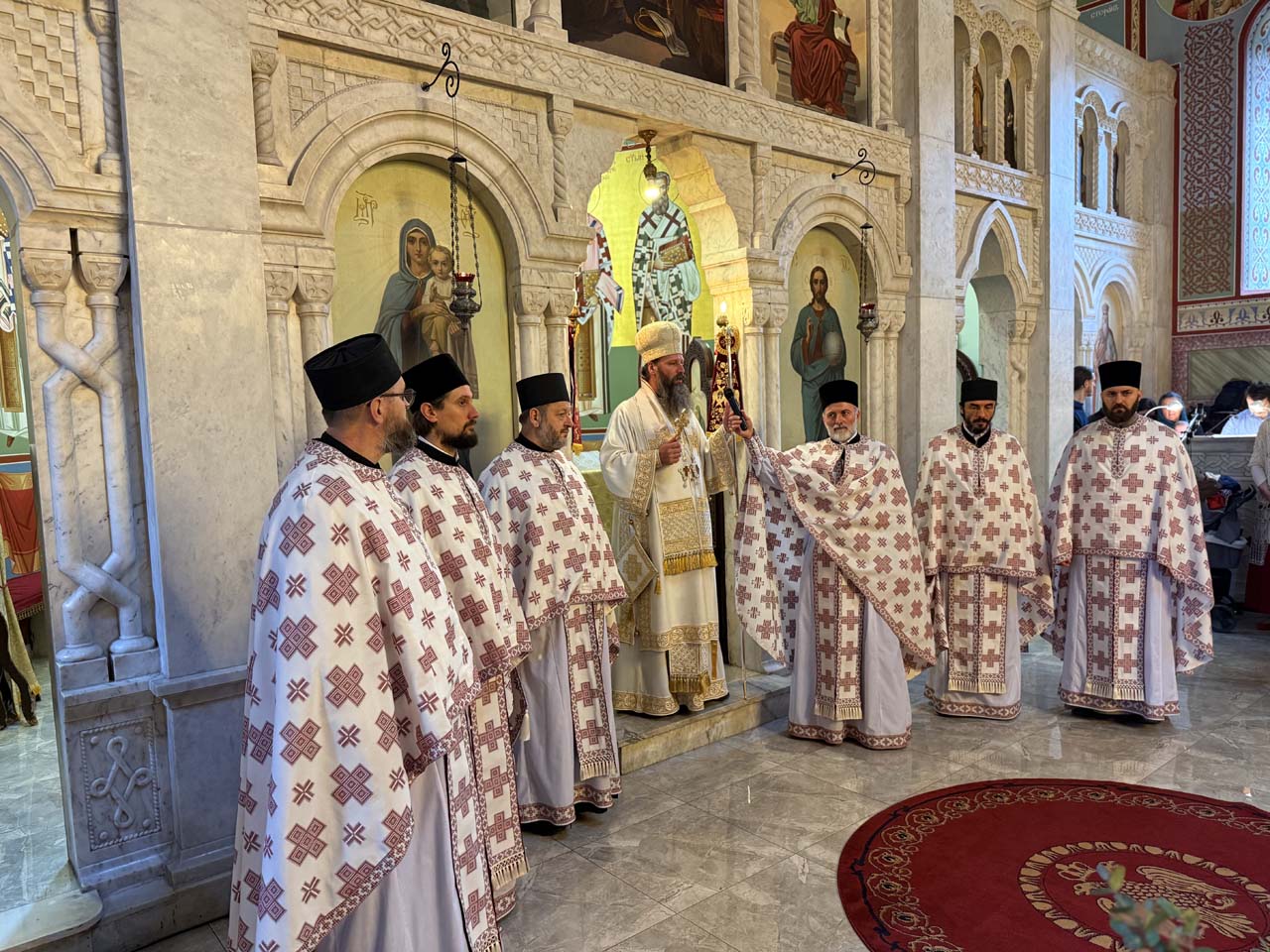 На Литургији, којом је началствовао Његово Преосвештенство епископ новобрдски Г. Иларион, певали смо са две певнице – певнички и мешовити хор, по договореном смењивању.