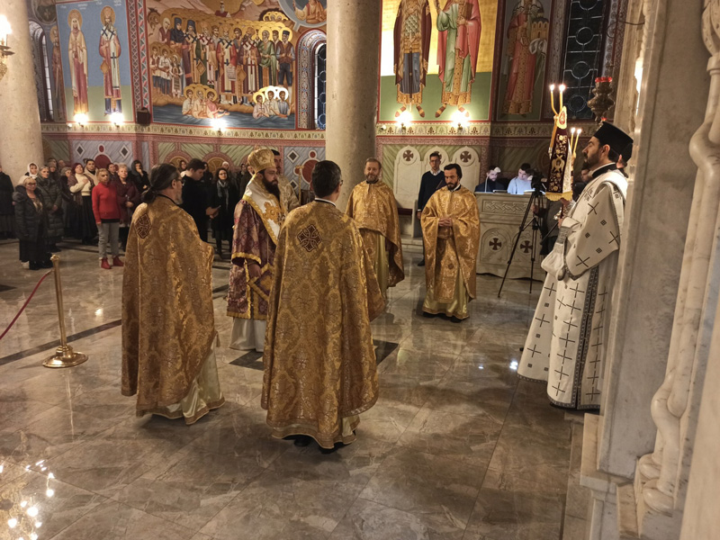 Богослужење је лепо текло, служили су сви свештеници нашег Храма, а драгоцена подршка за певницом су нам били и оци Бранислав К. и Александар. Служио је викарни епископ јегарски Нектарије.